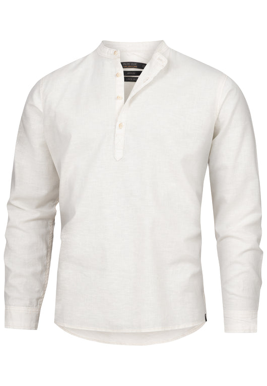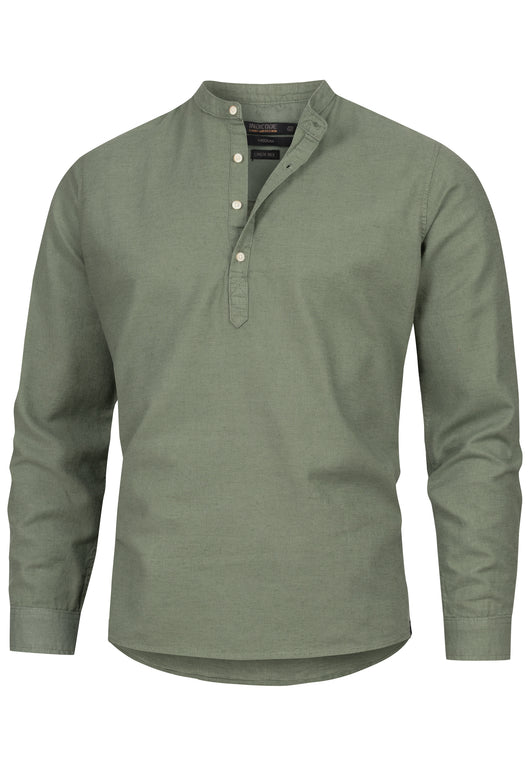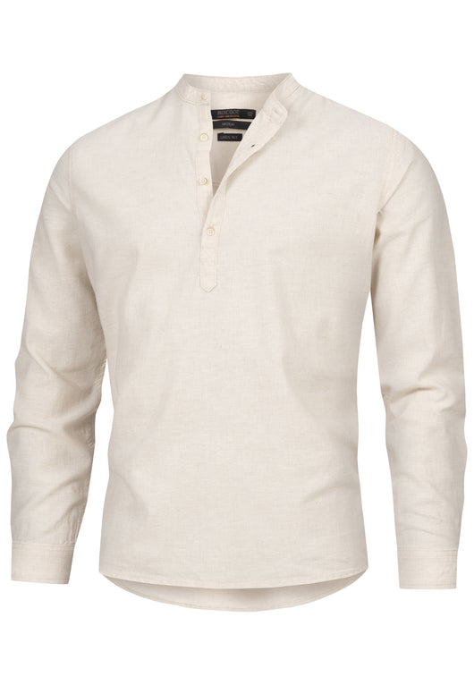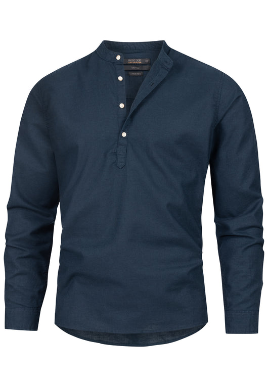 - Langarmhemd mit Stehkragen und halber Knopfleiste.
