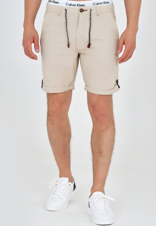 - DETAILS & HIGHLIGHTS: Modische Leinen Shorts, Bund mit Gürtelschlaufen, klassischen Knopf- und Reißverschluss, Tunnelzug mit Leder-Applikationen, zwei seitliche Eingriffstaschen, zwei Gesäßtaschen mit Knopfverschluss, Logo-Patch über der Gesäßtasche.