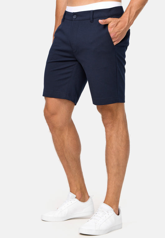 - DETAILS & HIGHLIGHTS: Herren Shorts im Business-Look, Bund mit Gürtelschlaufen, zwei seitliche Eingriffstaschen und zwei Gesäßtaschen, angenehm-weiches Tragegefühl, Metallclip an der rechten Gesäßtasche, Metallknopf mit verdecktem Reißverschluss.