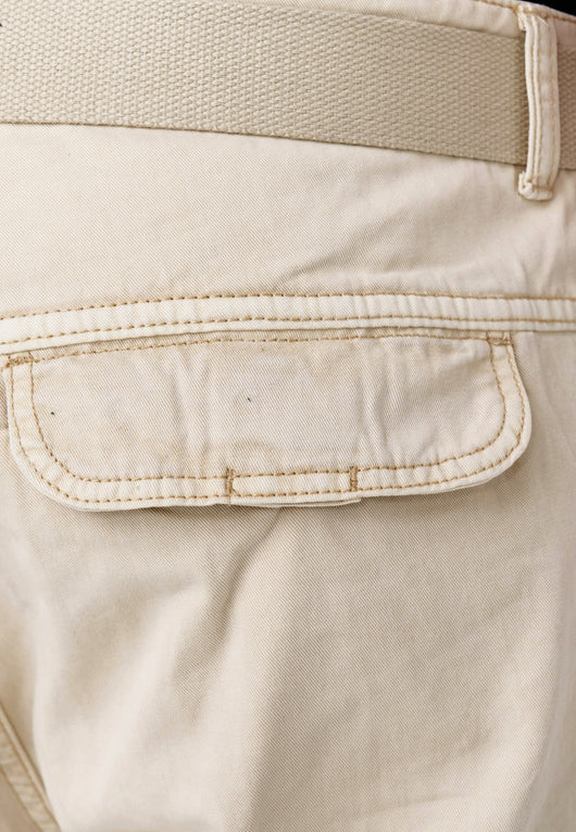 • Kunstleder-Logopatch über der rechten Gesäßtasche, dekorative Ziernähte, Ton-in-Ton Gürtel (im Lieferumfang enthalten), Holzknopf samt verdecktem Reißverschluss